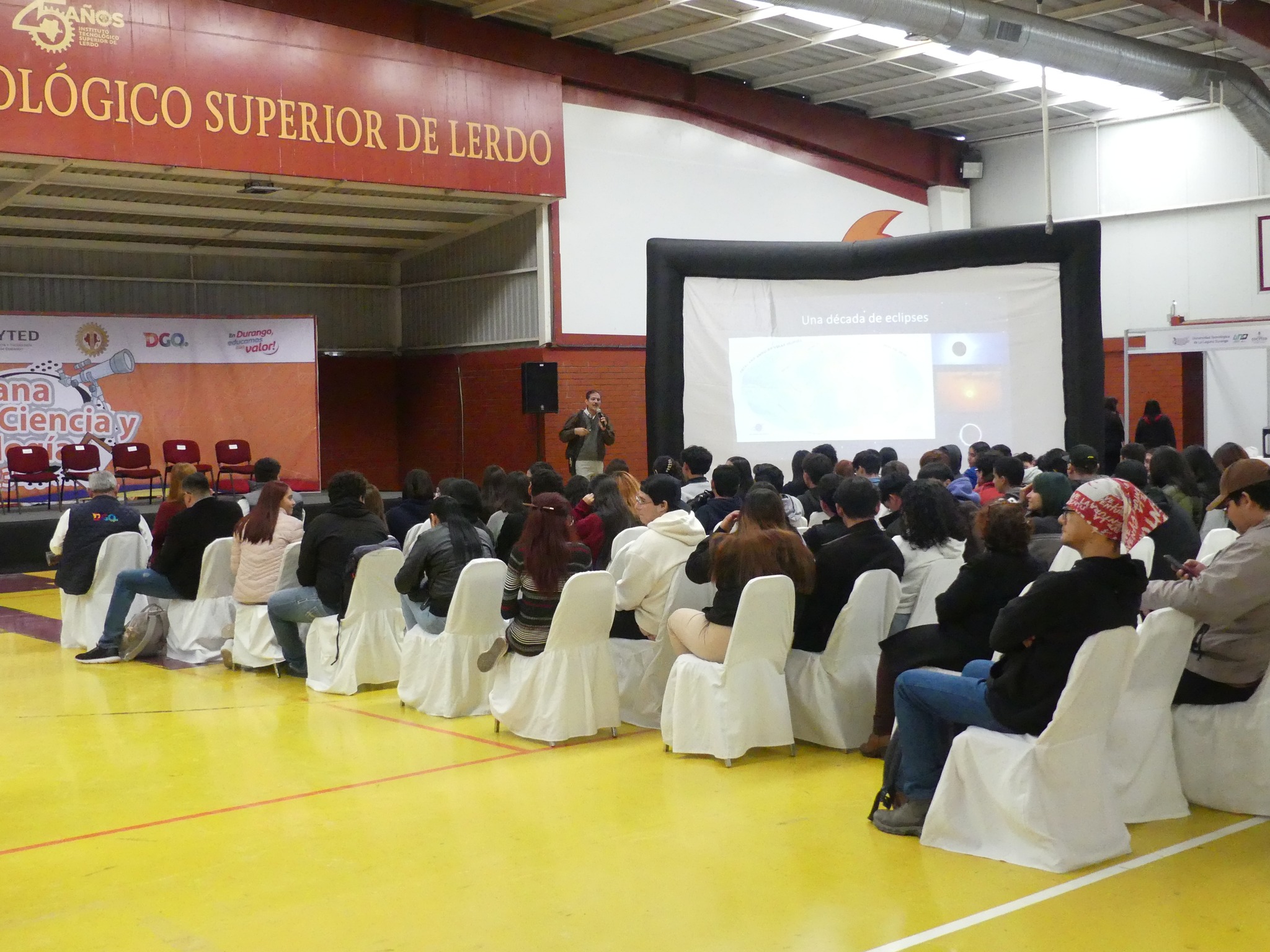 Las actividades de la Semana Estatal de Ciencia y Tecnología fueron inauguradas con la ceremonia presidida por nuestras autoridades educativas en los municipios de Lerdo y Gómez Palacio, el Mtro. Jairo Sigfrido Cerón Franco, Director de Servicios Educativos en la Región Laguna y representante de nuestro Gobernador, el Dr. Esteban Villegas Villarreal y del Srio. de Educación en el Estado el Dr. Guillermo Adame Calderón, el Prof. Román Alberto Herrera Díaz, Director de Educación Municipal Lerdo y la Lic. Sofía Muruaga Escamilla, Directora de Educación Municipal Gómez Palacio, así también, como anfitrión, nos recibió el Dr. José Dimas López Martínez, Director del Instituto Tecnológico Superior de Lerdo, sede de esta edición de la SECyT 2023, El Ing. Ernesto Cobos González, Presidente del grupo astronómico BACAB A.C. el Mtro. Julio Gerardo Lozoya Vélez, Secretario General de la UJED y el Dr. José Betancourt Hernández, Director General del COCyTED y coordinador general de las actividades de esta semana.